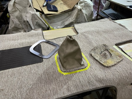 カーペットに縫い付けられているシフターブーツを