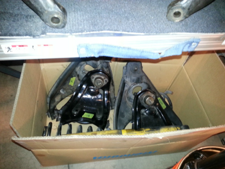 まずは  フロント の  サスペンション の  分解 が  始まりまして