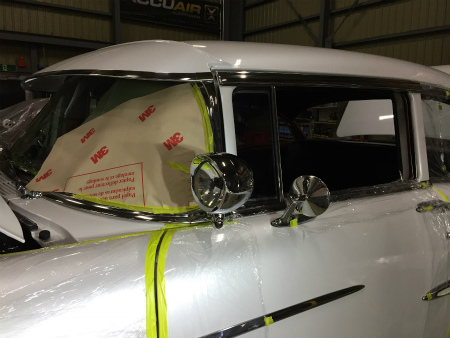 ダッシュ、 ガラス などを 養生 しまして
