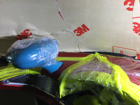 取り付ける 為の 加工中 に クルマ に傷 を 付けない様