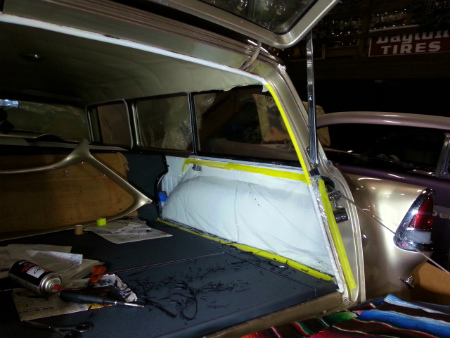 真っ白 な 内装 を、 汚さないよう 気 を 使いながら 交換 しまして