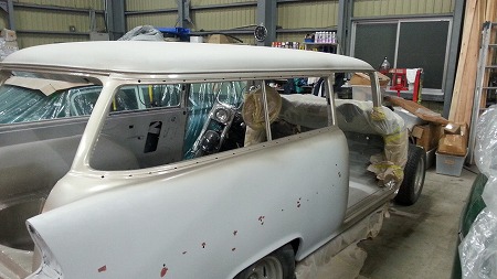 BODY の レストア を 終え、 PAINT 作業 が 進んでまして