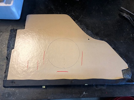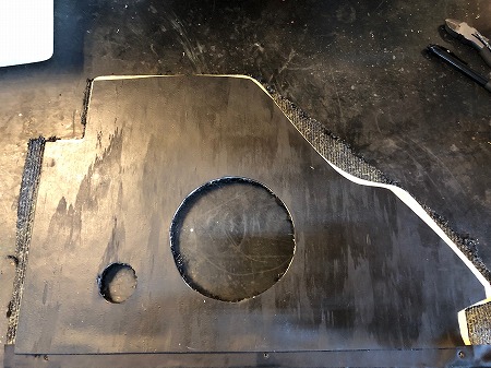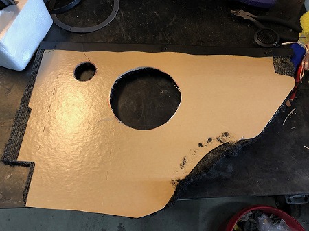 キックパネル に スピーカーの 穴を 開けまして