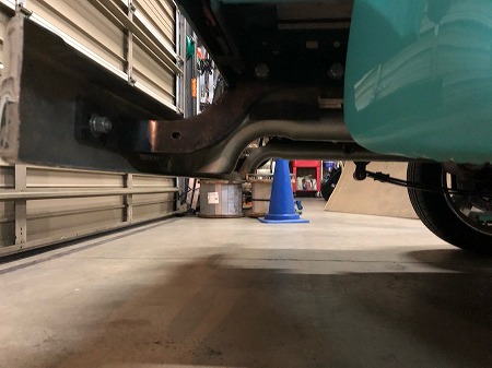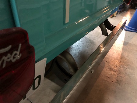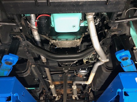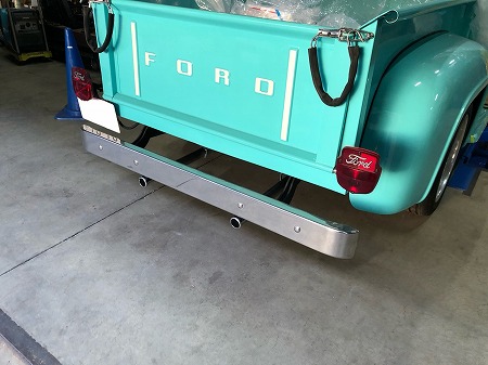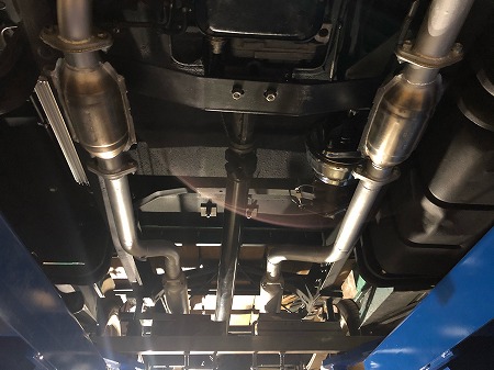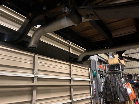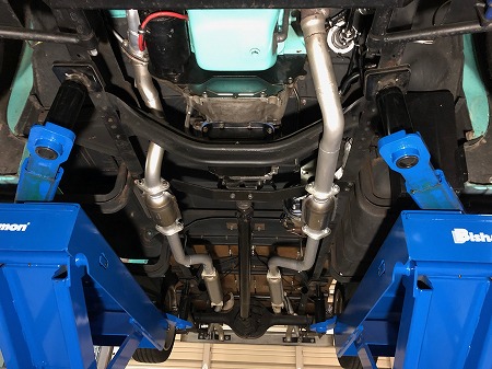 リアバンパー下から後ろに真っ直ぐ排気するように