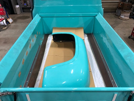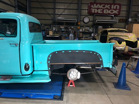 外したスペアタイヤ用のくぼみがあるリアフェンダーは