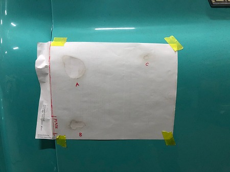 穴を2箇所と、ドアのへりの3点を記録しながら