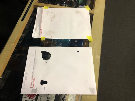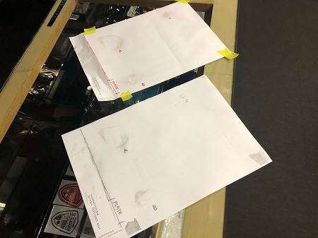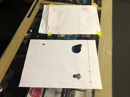キーシリンダーの穴を記録した型紙を作り、