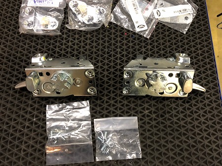 新品のラッチとストライカー、ストライカーのシムを