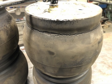 エアバックを外して、作業台の上でエアを張って