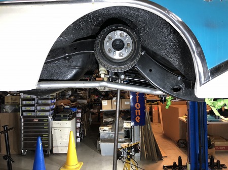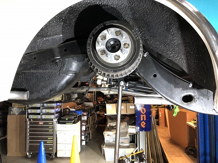 車高を上げると、短いショックが付いていたので