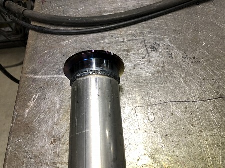 前側にカップリングジョイントのフランジを溶接し、