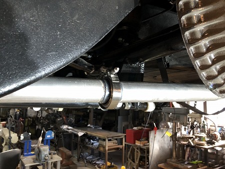 マフラーを低く作り直しながら、後のメンテナンス性を考えて