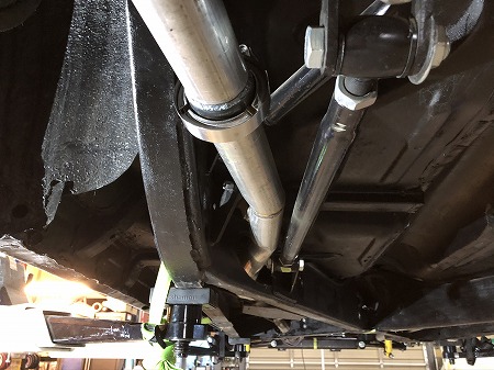 これまでのマフラーは、デフの手前で少し上に