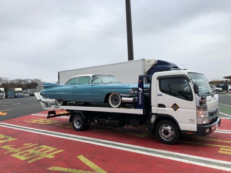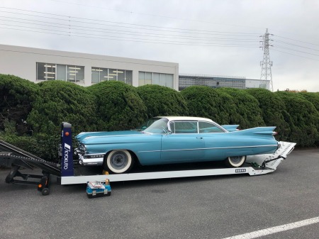 予備検査を終えた1959 CADILLACをS巻さんに届けたら