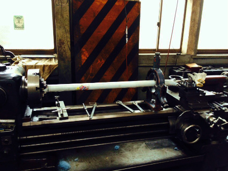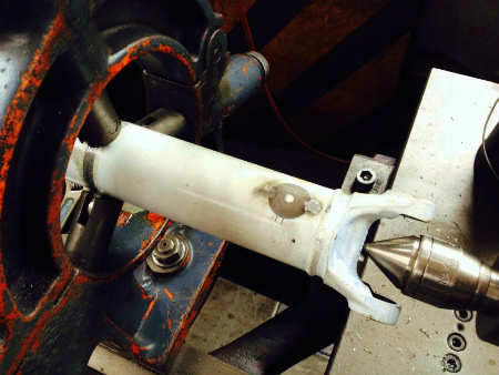 旋盤 で 芯 を 出して、 差し込み 構造 に 加工 して もらう ことに。