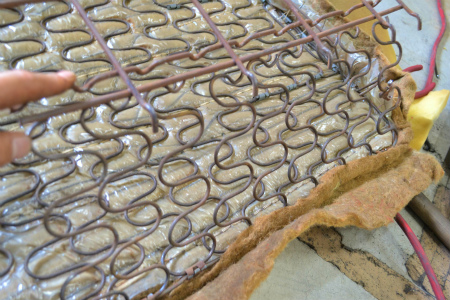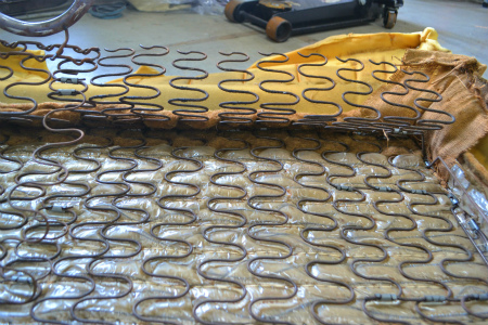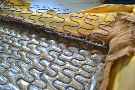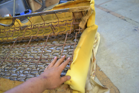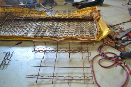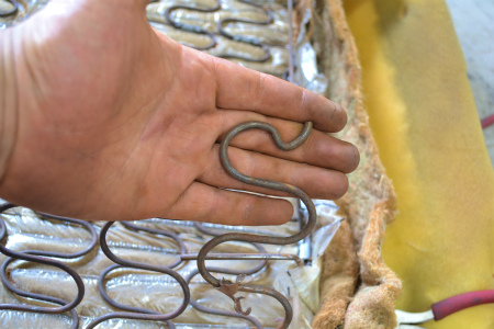 座面 が 低くなるよう、 スプリング を カット して いきまして