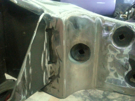 フロント クリップ 側、 ラダー フレーム 側 とも 鉄板 を 貼って