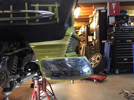 まずは 車 に 合わせて、  バンパー を 取り付けたい