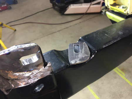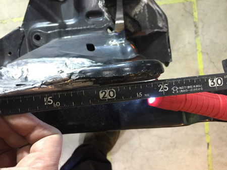 左 の ボルト穴 下付近 を 凹ませた 跡 が あり