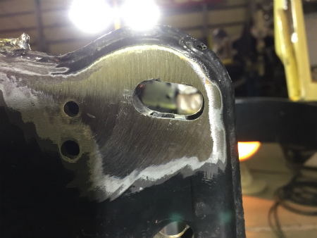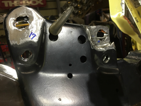 右フロント の アッパー アーム の 取り付け ボルト穴 が