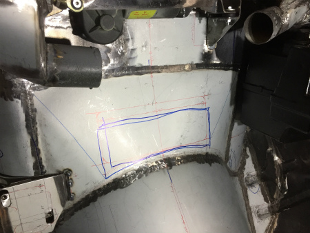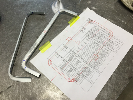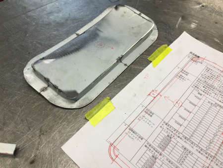 ケガキ を 入れたら、 鉄板 を 切り抜きまして