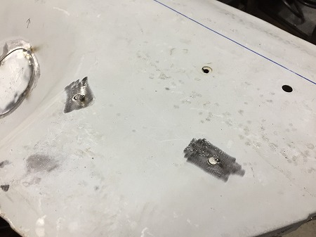 穴 の 大きさ の 鉄板 を 切り出して 溶接 し、