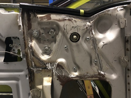結局、  全部 の ドア、  ボディ を 切って 板金 となり
