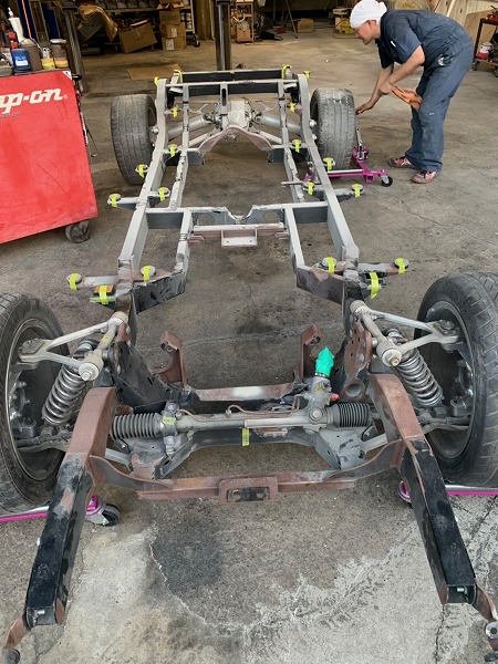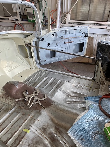 室内 に 鋼材 で 補強 の 治具を 組んで