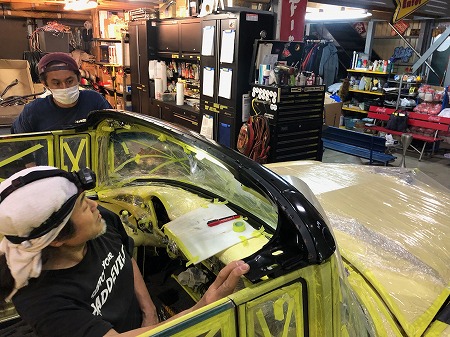 サイドガラス、クォーターガラスの組み立てへ