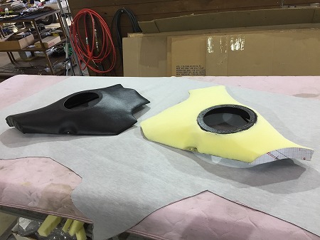 ウレタンを張ったうえから、レザーを張っていきます