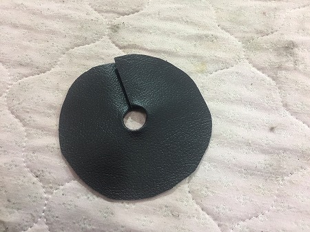 レザーを切り出して、レバーを通したのちに