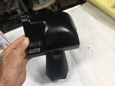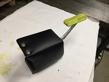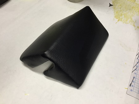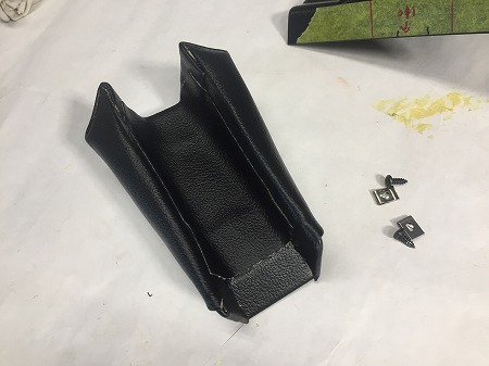 黒いレザーを張って仕上げまして