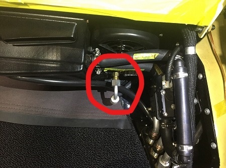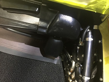 ファイヤーウォールの下側のフロア部分から
