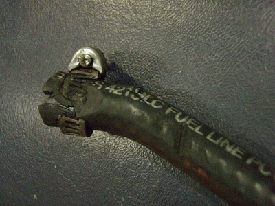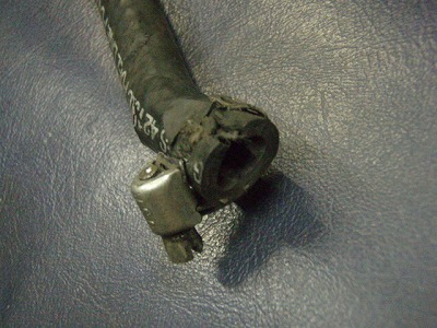 こすれてしまい、 ホースバンド もろとも 擦り切れて 割れていました。