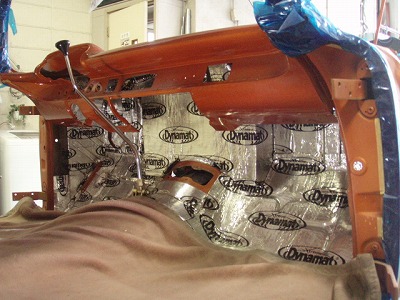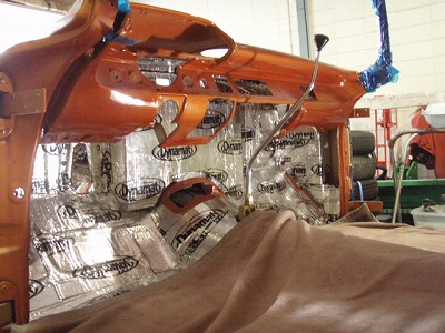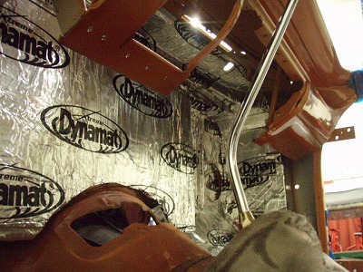 室内側は、 全体に 「 DYNA MAT 」 を 張っていきます。
