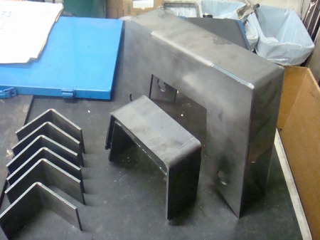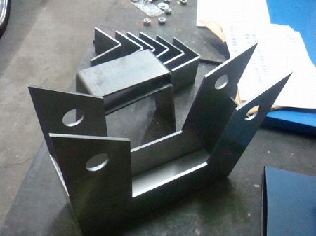 4,5mmの鉄板を、 切り出し 曲げて、 既存フレームとの 溶接用に 穴開け。