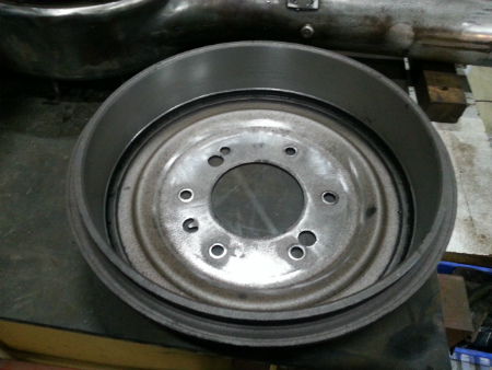 旋盤 で 曲がり の 測定 と、 ハブ面 の 研磨 を 終え