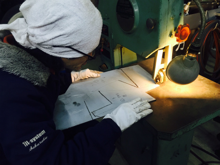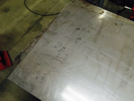 型紙 を とって、 鉄板 に 書き写したら