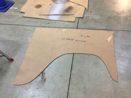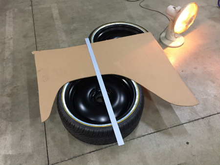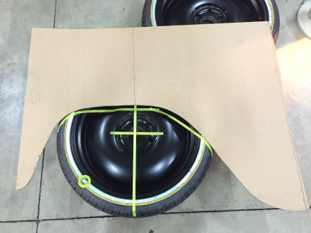大きな 厚紙 に クルマ の フェンダー を あてがい