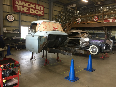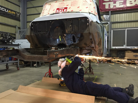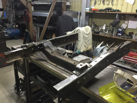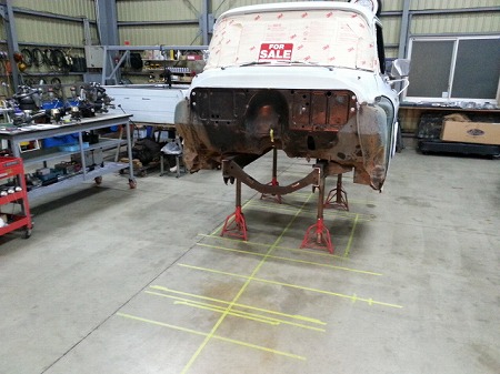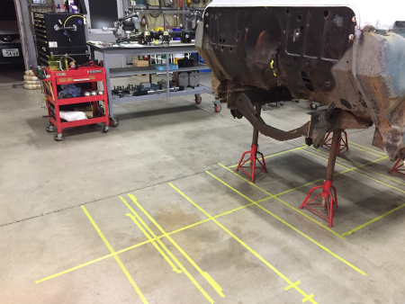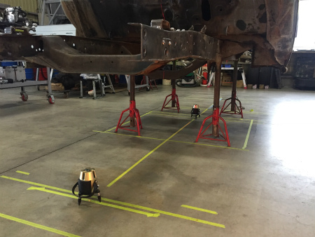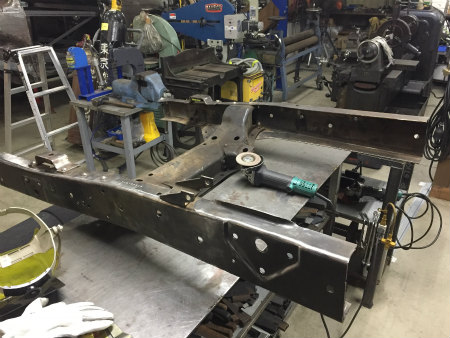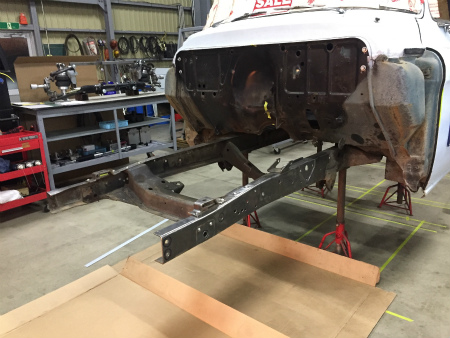 切り離した  フロント フレーム は  作業台 に  載せられ