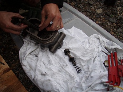 ピストンを 取り出して 点検。
