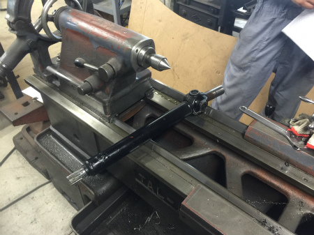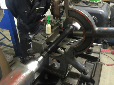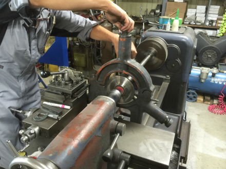 フロント シャフト を 旋盤 に セット して 回して みたら、