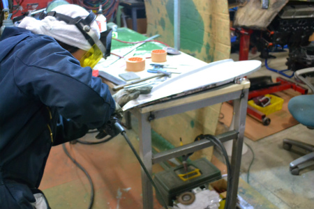 早速、 フェンダー スカート の 板金 に