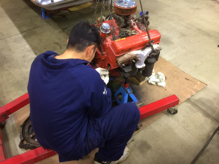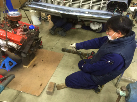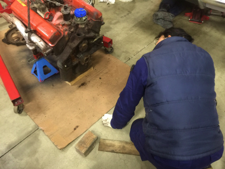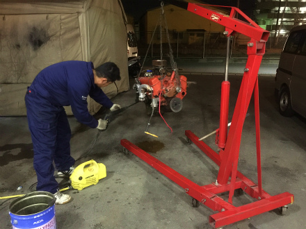 合わせ面 に あるので、 エンジン を 降ろして 修理 と なりまして