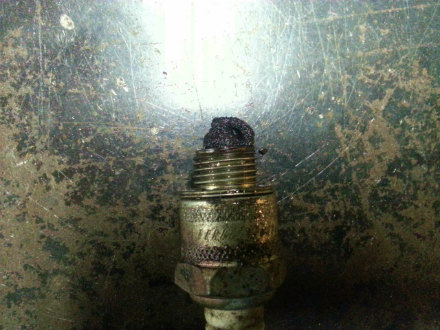 見たら、 見事 に プラグ が 腐って、 穴 開いてますね。。。。。。