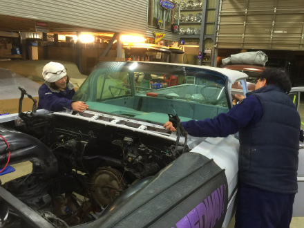 そんな こんな で、 フロント ガラス も 入った 59 ELCO。