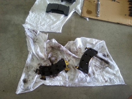 点検 してたら、 パッド が 斜め に 削れて まして、、、、