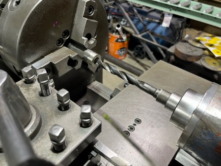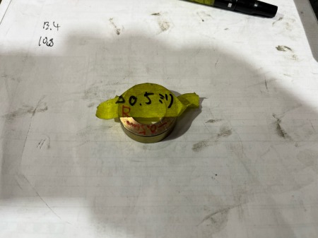 0、5mm旋盤で薄く削りつつ、スピンドルに