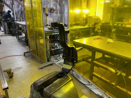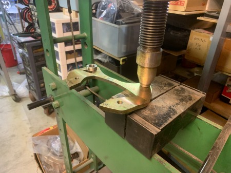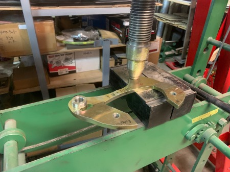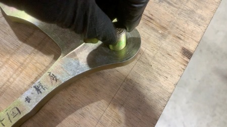 分厚い板に穴を開けてから、プレス機で曲げて