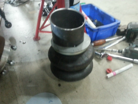 市販 の ブラケット と、 大きな エアバック を 組み合わせて 使うと、